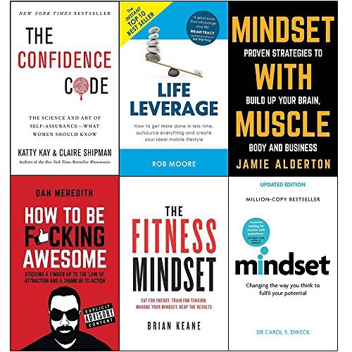 Confidence code the science and art of self-assurance, life leverage, mindset with muscle, how to be fucking awesome, fitness mindset and mindset carol dweck 6 books collection set Description:- Confidence code the science and art of self-assurance: following the success of lean in and why women should rule the world, the authors of the bestselling womenomics provide an informative and practical guide to understanding the importance of confidence—and learning how to achieve it—for women of all ages and at all stages of their career, life leverage: using rob moore's remarkable life leverage model, you'll quickly banish & outsource all your confusion, frustration and stress & live your ideal, globally mobile life, doing more of what you love on your own terms, mindset with muscle: how would it feel to have the body and business you've always dreamed of? mindset with muscle takes you on a different transformation journey. rather than hitting the gym and obsessing about success, this book brings you 'sets and reps for the brain, how to be f*cking awesome: if you've been looking for a kick up the backside to finally launch that business, start a new project you've been putting off or just become all round awesome, this book is for you. why do some people have an awesome life, fitness mindset:how would it feel to have the body you've always wanted, a huge boost in energy, and the mindset to keep it forever? have you ever felt frustrated about not getting the results you want? do you feel you are eating the right foods and doing the correct workouts, mindset :world-renowned stanford university psychologist carol dweck, in decades of research on achievement and success, has discovered a truly groundbreaking idea-the power of our mindset