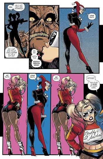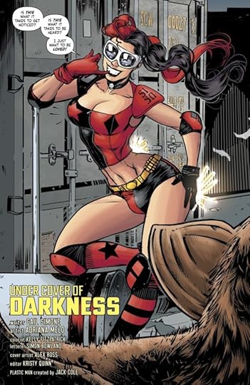 However, it did feature a young trans person who was trying to decide who they wanted to be when they grew up. From my (pretty ignorant) view, it seemed like Simone did a nice job representing trans people. There was evidently some sort of internet kerfuffle where she (preemptively?) apologized for this (below) image of Plastic Man as Harley because of the 'bulge' in his pants. I think Simone was worried that her meaning (Plas is poking fun at Harley but still himself at his core) would get mixed up and twisted into the myth that trans women try to 'trick' straight men. Again, I'm not in the know about any of that, but it truly seems that Simone is a caring writer and didn't do anything offensive on purpose. I had no idea this was even a thing until I looked up the comic, and it honestly seemed like most everyone was super nice to her about it.