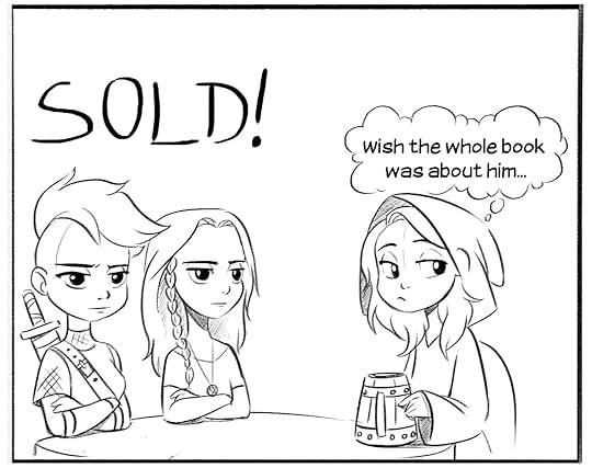 The story has some cool things like a unicorn healer and an off-kilter grandmother that likes to bake things. I like Jev & his two buddies. Zenia did not grow on me at all. Rhi, the pious monk, was the best of them all. She's a side character. The unicorn is mentioned in one sentence out of the whole book.