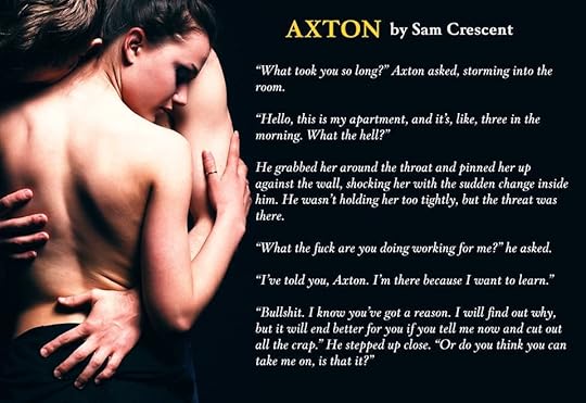 OMG!!!😳 Sam Crescent!!! You did it again and this time you totally blew it outta the water Axton is by far the BEST book you have written out of all your books I've read. I was blown away by the suspense the secrets lies and deceit and let's not forget the 🔥 🔥 🔥 HOT SEX SCENES!!! 😳💯😍. Axton and Taylor were meant for each other no matter the odds stacked against them they pulled through every test and trial and came out on top. Well done Sam on this awesome book you've brought us as your readers💖😘