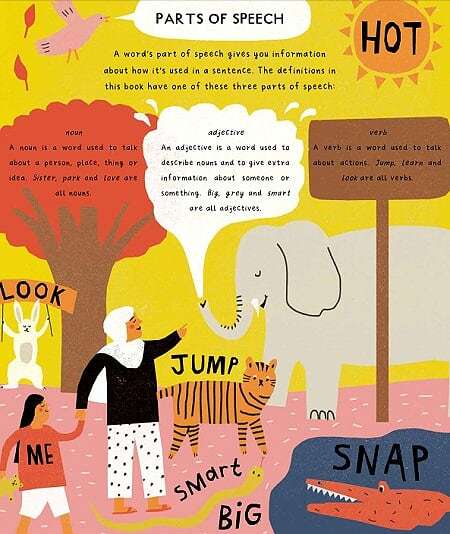 I also really appreciated that Solomon did such an effective job describing *how* to use a dictionary. Let’s be honest, folks... Most kids in this {digital} day and age basically just ask Alexa what a word means. Heck, all I have to do is touch a word on my Kindle or right-click on my laptop if I don’t know what something means. But she so beautifully explains that there is no wrong way to read this book, what the parts of speech mean, and how prefixes and suffixes can help figure out a word’s meaning. Fantastic idea for those new to these types of concepts...