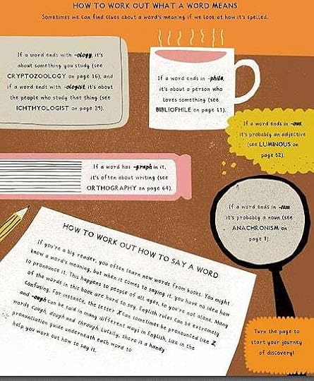 What a beauty. Although by all intents and purposes this seems like a children's book this is a perfect addition to the library or bookshelf of anyone interested in the English language and all of the weird, wonderful and often underused words that make it so fascinating. Each word is clearly defined in accessible, easily understood terms and the correct pronunciation is also given; that is of course very helpful. The bright, bold colours surrounding the words and the accompanying illustrations make this a must-have for schools and local libraries. Most regular people don't read dictionaries front to back, but I must admit this is so engaging that I did exactly that. That said, it also lends itself well to those wishing to dip in and out at their leisure.