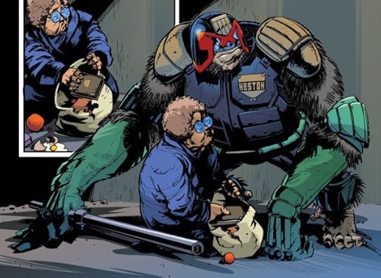 along the east coast of post-apocalyptic North America. Poverty is rife, crime is rampant, and only the Judges – empowered to dispense instant justice – can stop total anarchy. Toughest of them all is JUDGE DREDD – he is the Law!
