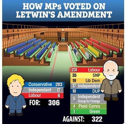 There you have it: 322 versus 306. Boris defeated, and yet he says he won't negotiate a delay with the EU.