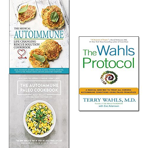 Wahls protocol,paleo cookbook,medical autoimmune life changing rescue 3 books collection set. Description: The Autoimmune Paleo Cookbook:One in five people are affected by autoimmune illness. In The Autoimmune Paleo Cookbook, author Mickey Trescott presents a gorgeous wellness cookbook that offers practical advice and solutions In her mid-twenties, struggling with low energy and fatigue that had plagued her for years, Mickey Trescott received two autoimmune diagnoses.The Medical Autoimmune Life Changing Rescue Solution Cookbook: Your diet plays a huge part in reversing, treating and controlling chronic, inflammatory illness and the Autoimmune Protocol is a fantastic tool for making sense of what you eat, to keep you being the best you can. By managing the types of food you eat, you can improve, prevent and reverse debilitating conditions now and in the future. The Wahls Protocol: Dr Wahls began studying the latest research on autoimmune disease and brain biology and decided to get her vitamins, minerals, antioxidants and essential fatty acids from the food she ate rather than pills and supplements. Dr Wahls adopted the nutrient-rich paleo diet, gradually refining and integrating it into a regimen of neuromuscular stimulation.
