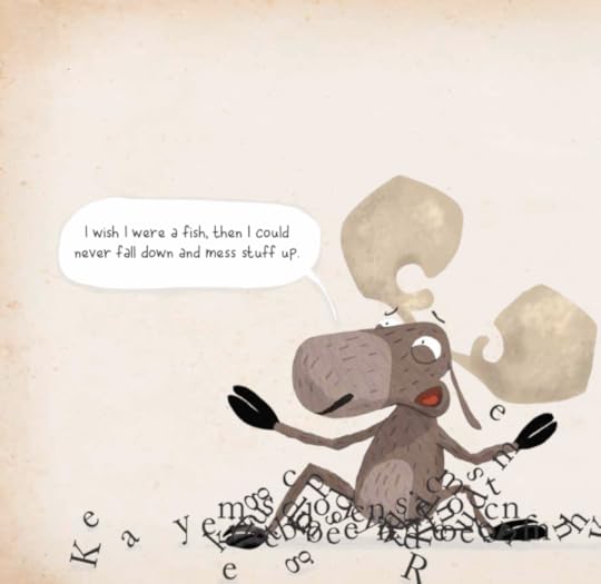 This is supposed to be a book about all the different things moose can do, like leaping and jumping and being really tall. But maybe Whoopsie isn’t the right moose for the job. You might want to pick a different moose for the book. Maybe instead we can do a book about falling down a lot? Yeah! Whoopise would be great at that! Its a hillarious book about a clumsy moose that shows sometimes being a little different can make one great story.