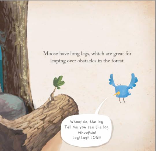Meet Whoopsie! He is a moose! And this book is supposed to teach children about moose and what their lifestyle is like in real life. Unfortunately, Whoopsie is extremely clumsy and he is constantly falling over himself on each page. After making too many mistakes, Whoopsie decides that he is not the right moose for the job. But, his bluebird friend thinks differently.