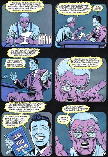 Some of the dialogue and colouring does feel pretty dated, almost '80s-esque, particularly the repeated insertion of a "It's all society's fault!" talking head (with the absolutely delicious name of Simpson Flanders) on a series of talk shows in the background. But seeing as how I slogged through the even more reactionary "No Man's Land" and for the most part enjoyed it this one was a cut above, hence the 5-star rating. What you all came here to see. Got to say, arriving at the moment in context did not disappoint.