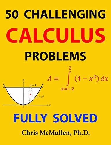 These 50 challenging calculus problems involve applying a variety of calculus skills. The exercises come with a good range of difficulty from milder challenges to very hard problems. On the page following each problem you can find the full solution with explanations. Topics include: derivatives of polynomials, trig functions, exponentials, and logarithms; the chain rule, product rule, and quotient rule; second derivatives (and beyond); applications such as related rates, extreme values, and optimization; limits, including l’Hopital’s rule; antiderivatives of polynomials, trig functions, exponentials, and logarithms; definite and indefinite integrals; techniques of integration, including substitution, trig sub, and integration by parts; multiple integrals; and non-Cartesian coordinate systems.