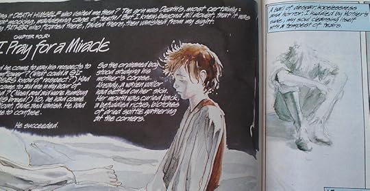 There’s too many words, usually, for my taste, which makes it seem more like an illustrated story than a comic. It’s a combination of lovely, haunting, strange, a comics classic, produced in single issues from 1985 through 1987, released in 1998 in this “compleat” version. It’s romantic, Blakean, with nods to all the romantics, including Shelley and Yeats, but there’s also a shout-out to The Brothers Karamazov. The vibe feels more sixties that eighties, for sure. It was in part inspired by the Cat Steven’s song, above.