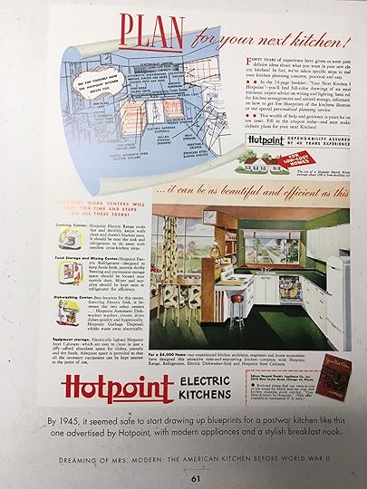 Still sound boring? I hope not--the kitchen's evolution is tied to changes in American culture at every point, so it necessarily reflects the norms, aspirations, and fears of the wider culture, while also having so really interesting aesthetic choices.
