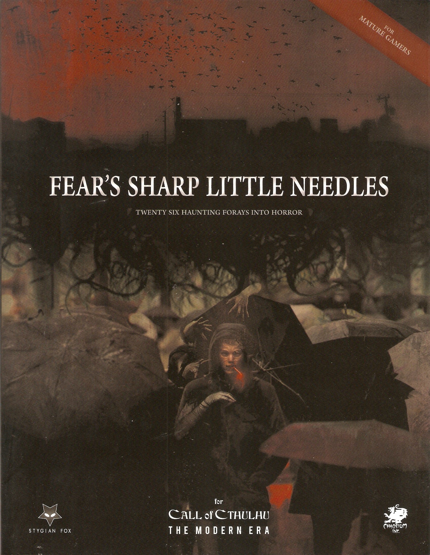 Fear's Sharp Little Needles is a collection of 26 adventures set in the modern era for Chaosium Inc's Call of Cthulhu roleplaying game of cosmic horror and personal terror.
