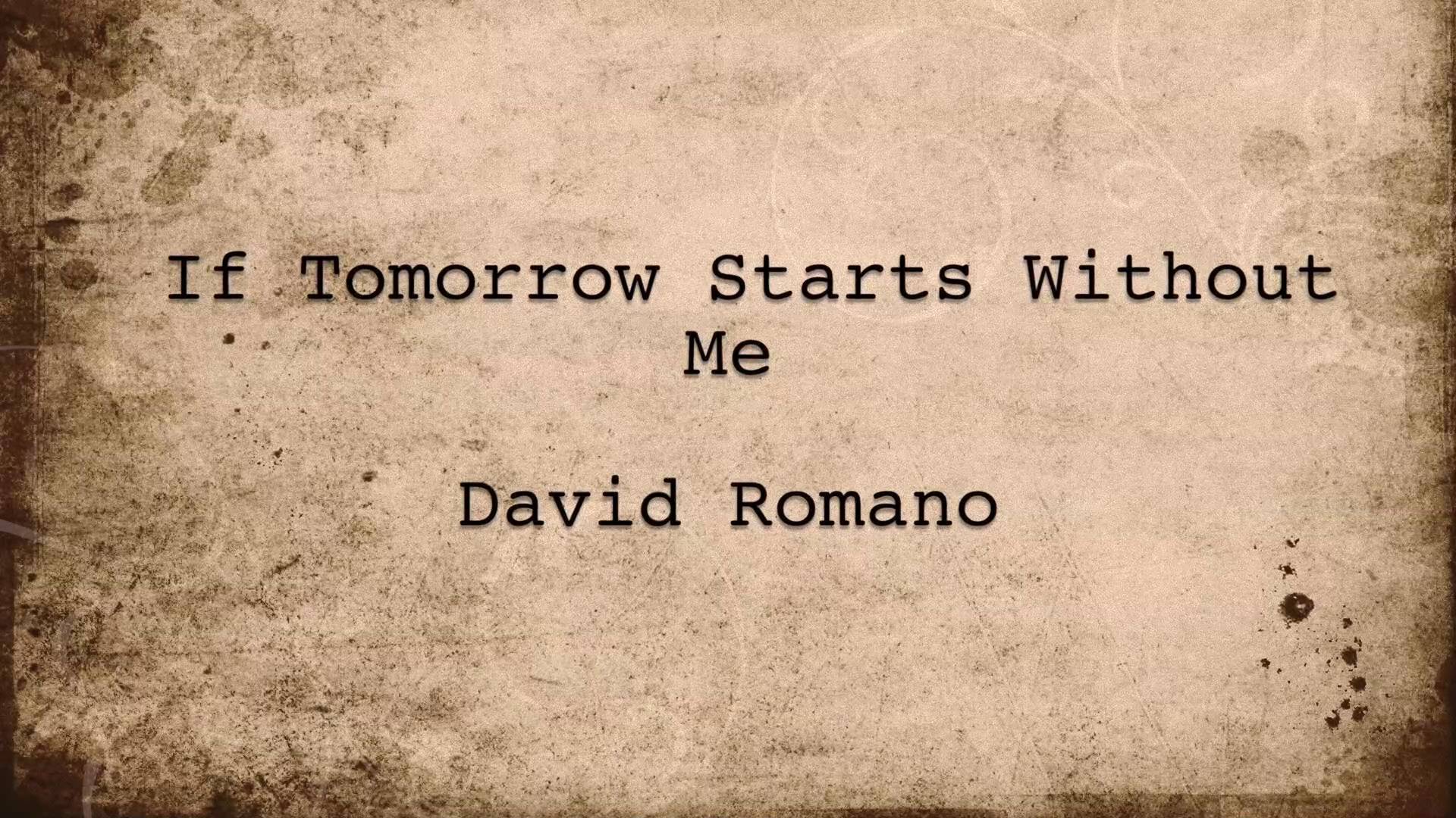 If tomorrow starts without me, and I'm not there to see, If the sun should rise and find your eyes all filled with tears for me; I wish so much you wouldn't cry the way you did today, while thinking of the many things we didn't get to say. I know how much you care for me, and how much I care for you, and each time that you think of me I know you'll miss me too;