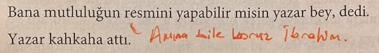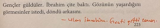 Gereksiz dip notlarda bugün: okuduğum süre boyunca aklımda hep o dize “ibrâhîm / gönlümü put sanıp da kıran kim” döndü durdu. Asaf Halet'in ‘İbrahim’ şiirini çözümlemeyeceğim şimdi, ama şiirdeki mânâ ile bu kitaptaki anlam son derece paralel; soruyor zaten ‘İbrahim, senin ismin neden İbrahim?’.