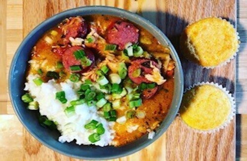 We started with a few dinner recipes. First up was ‘Dirty South Gumbo’ which turned out perfect. You basically sear the chicken, move onto the roux, and then add everything in as you go. Have rice cooking on the side to serve it with when it’s done.
