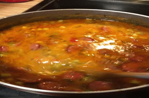 The “difficult” (which is not difficult at all – just takes a bit of time) is that prep. After that part’s done, you just dump a bunch of chicken stock, sausage, chicken (I added shrimp too since I had it), hot sauce and seasons and let her cook . . . .
