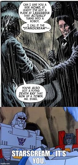 Not as good as first two volumes, in my opinion, but I'm totally enjoying this horror take on the Green Goliath by Ewing and Bennett. And Tony Stark's "Starkscream" plane trasforming into a robot joke just made my day.