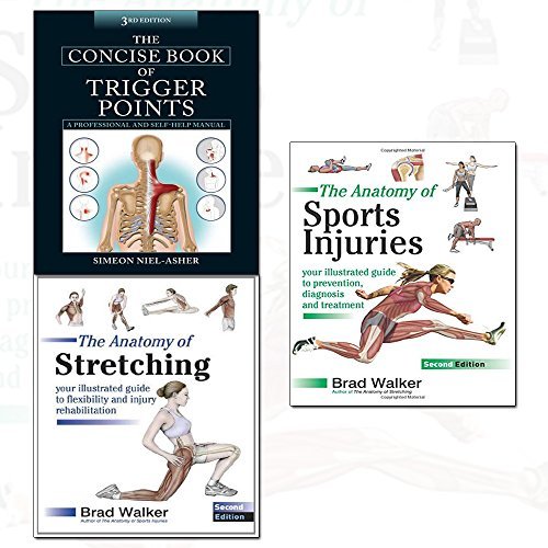 concise book of trigger points,the anatomy of sports injuries,the anatomy of stretching 3 books collection set - (your illustrated guide to prevention, diagnosis and treatment,your illustrated guide to flexibility and injury rehabilitation). Description : The Anatomy of Sports Injuries: Your Illustrated Guide to Prevention, Diagnosis and Treatment Everyone who plays sports experiences injuries. Many people never fully recover because they are not aware of what they can do to facilitate recovery. But there is no need to simply resign yourself to living with a sports injury. Author Brad Walker brings years of expertise - he works with elite-level and world-champion athletes, and lectures on injury prevention, to this fully updated and expanded edition of The Anatomy of Sports Injuries. The Anatomy of Stretching: Your Illustrated Guide to Flexibility and Injury Rehabilitation When The Anatomy of Stretching was originally published, it was the first book to cover the topic of anatomy and physiology for stretching and flexibility. Since then others have been written, but no other book on the subject contains more examples of stretching exercises, or is able to take detailed anatomical information and present it in a way that is easy for everyone to understand. The Concise Book of Trigger Points Since publication almost ten years ago, The Concise Book of Trigger Points has been translated into over 20 languages and become a best seller worldwide. This new edition has been completely updated and revamped, sharing current research, evidence, and advanced techniques for manual therapy practitioners, as well as simple self-help protocols that the layperson can do at home.