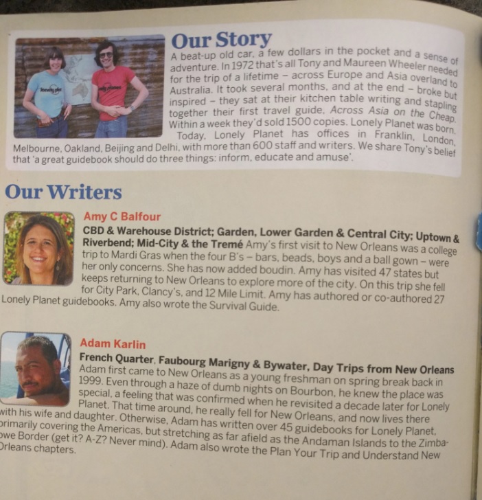 And finally, this is the story of the couple that invented the Lonely Planet franchise, and the writers of this particular volume. Adam Karlin looks like a mortal sin here (ha!)