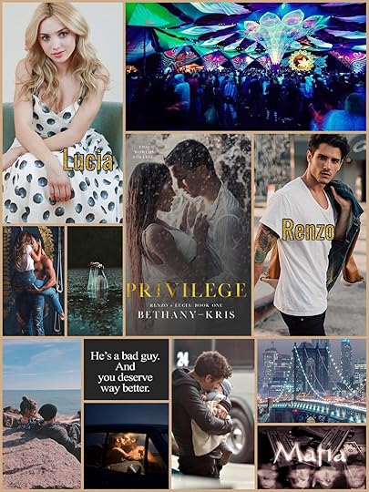 "Stroking those flames that had already been blazing out of control inside her body as his lips worked roughly against hers. Vicious and harsh, his kiss left her gasping."Overall, Privilege is an absolute must-read for mafia romance fans. Ms. Kris continues to amaze me with her complex plots and well-developed characters. I have become a complete Bethany-Kris addict and I cannot wait for more Renzo and Lucia!