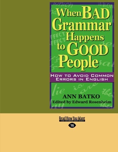Ever stumble when choosing between who and whom, affect and effect, lay and lie? Are you worried that how you speak or write is holding you back at work? Do you fear you're making frequent conversational errors, but just aren't sure what's correct? How you use language tells people a good deal about who you are, how you think, and how you communicate. Making simple errors in written and spoken English can make you seem less sophisticatedeven less intelligentthan you really are. And that can affect [not effect) your relationships, your friendships, and even your career. This comprehensive, easy-to-use reference is a program designed to help you identify and correct the most common errors in written and spoken English. After a short and simple review of some basic principles, When Bad Grammar Happens to Good People is organized in the most useful way possibleby error type, such as Problem Pronouns or Mixing up Words That Sound the Same. You choose how to work your way through, either sequentially or in the order most relevant to you. Each chapter contains tests to help reinforce what you've learned. Best of all, the information is presented in a clear, lively, and conversational stylethis is not your 8th grade grammar textbook!