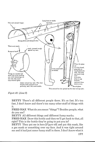 I thought this was a well organized and thoroughly researched record of an investigation of a UFO encounter. I found it very readable. The writing was generally good but could have used some copyediting. I liked that Betty Andreasson’s drawings and other diagrams were included and clearly labelled and that the text referenced them coherently. I also enjoyed the other evidence included, like photos and Psychological Stress Evaluator printouts. The author’s tone struck me as direct, transparent, and honest. I found the Epilogue very interesting, and I am intrigued by the case in general. I think one of the things that most astounded me in reading this book was Betty’s incredible visual memory and drawing skills (which persisted despite the pain of trying to recall such traumatic events!). These abilities certainly allowed her to provide a wealth of important and fascinating details about her experiences that may not have otherwise been recorded and to help the investigators (and thus readers of the book) understand the strange experiences she was describing.
