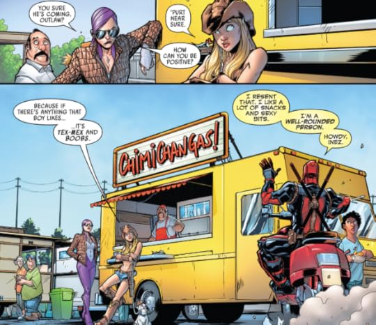 This is all pretty fun. I mean the plot itself isn't mind-blowing but the characterization is great and the art is solid. I really enjoyed all the relationships and this is one of the rare books I didn't find Deadpool highly annoying. Gail obviously loves writing Domino and I hope she gets more chances in the future to do so. A 4 out of 5.