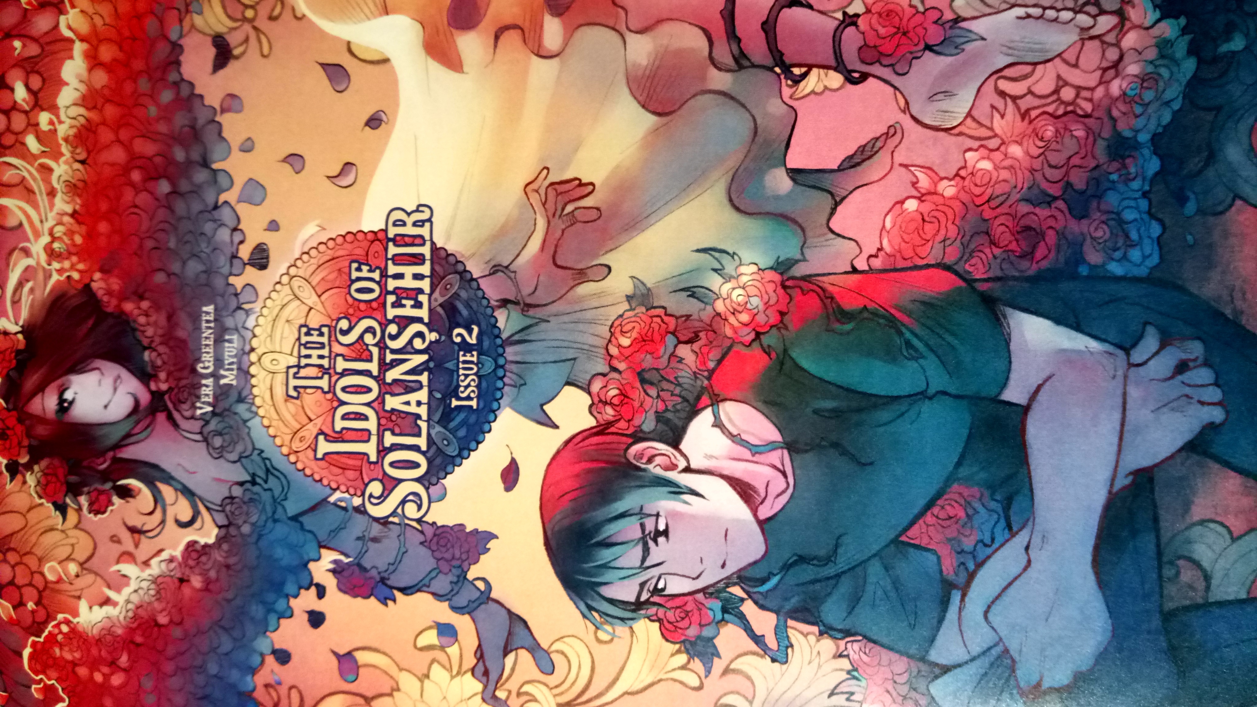 The Idols of Solanşehir is a comic / graphic novel by Vera Greentea, and illustrated by Julia Kutsch, also known as Miyuli. This issue also has an illustration credit (on Goodreads) to Adam Wollet. In the first book we met a set of siblings, sistsers Rhett and Rosemary, and their brother, Sam. In the first book, he comes home after his travels, with a mysterious injury. In this book, Rhett tries looking into magic in the hopes that she can heal his injury magically. I’ll give you a heads up that this is not a full story by itself; it’s the second issue of a series, and the story continues on in later issues.