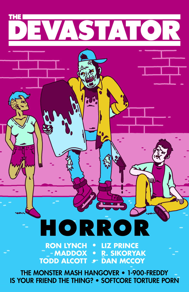 The Devastator: Horror is inside the house! Pop culture better run while it still can, because Horror has a knife and... Oh my god! They got Caitlin! Do you dare open this disgusting den of monster parodies? We go Van Helsing on Freddy Krueger, Frankenstein, The Thing, the guy in the dog costume from The Shining and more! Flip the book around for "Scary Stories to Tell Your Ungrateful Family in the Dark," a 90s horror book that'll scare kids straight... into appreciating their dads, and rightfully distrusting their mother's new boyfriend.