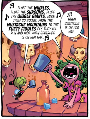 The genius of this series is the idea that fairyland is one, built for children, and two, should have an expiration date. Gertrude, a foul-mouthed homicidal maniac in the form of a perpetually small child, is what would happen if someone was forced to endure endless disappointments in a futile effort to go home again. And was given a pointy-edged sword with little to no consequences for her actions.