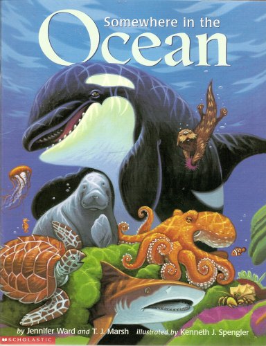 Somewhere in the Ocean by Jennifer Ward, T.J. Marsh, and illustrated by Kenneth Spengler is a children's book about different sea animals. On each page there is a different animal that lives in the ocean. Each page also includes a number representing the number of babies this animals has. As the reader flips to the next page, the number will increase by one. The animals are living there everyday life and the reader gets to explore different scenarios that the animals are in. At the end of the book, the author gives facts about animals talked about in the story such as clown fish, orcas, sharks, turtles, ect. It is an awesome book to read to kids who are either learning how to count or learning about different animals.