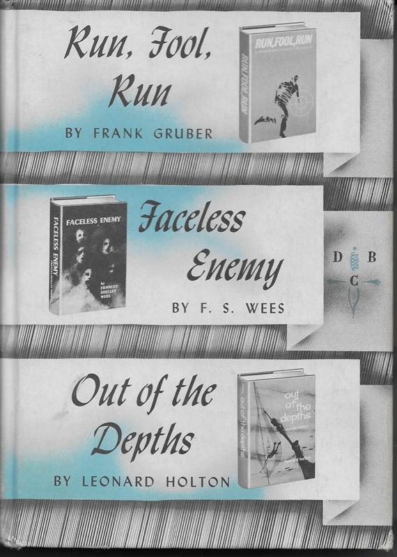 Detective Book Club for December 1966. Gruber, Frank. Run, Fool, Run (1966 Dutton) Wees, F S. Faceless Enemy (1966 Doubleday) Holton, Leonard. Out Of The Depths (1966 Dodd, Mead)
