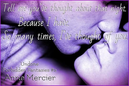 Oh boy! Book one in the Forbidden Fantasies series threw me for a loop. It was crazy good, and I wasn't sure if she could top it. I knew Undone was in the same series, but wasn't sure how it would be connected. Let's just say, I was not disappointed!