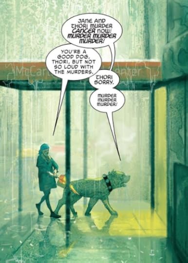 Aaron's epic Thor run nears its end, with only one mega-crossover and one last Volume 1 (his seventh, by my reckoning to go). So what better time to take stock? The sort of taking stock which involves killer space prisons, tsunamis and god-on-god throwdowns, granted, but then at its best this run was always grasping for the sort of epic pitch where that makes sense. So we see Thor's long-ago first love, and his terrible chat-up lines ("Do you slay here often?"); we see Jane Foster's own ongoing battle (I'm not ashamed to admit I cried a little at adorable, murder-obsessed Helhound pup Thori walking her to her medical appointment, muttering about how he would murder cancer). We see a former agent of disbanded SHIELD given new purpose, what Loki has been up to lately finally sort-of explained, and far closer links than hitherto with Aaron's Avengers run. We also get an issue about fatherhood which is as raw as anything in Southern Bastards, given mythic heft by the fact it's centred on the Allfather, who in this metaphysic pretty much literally invented toxic masculinity. My hopes for the big smackdown into which this leads are no longer all that high, because the hit rate for Marvel crossovers lately has been deeply patchy. But this overture is a delight.