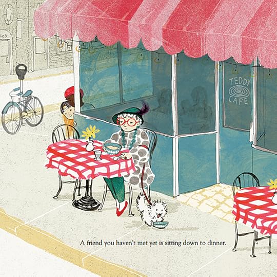 Very nice and "in the moment" story. sort of reminds me of two books I used to use in story times ages ago to teach children to think about our world: Somewhere in the World Right Now and On the Same Day in March. Maybe Me on a Map, too! This book is similar, only with what someone or something is doing or happening at this very moment e.g.: I'm typing, someone up the street is having lunch, a baby is napping... all at the same moment! And the art work in it is lovely! I think it's a cool concept for littles! Great book!