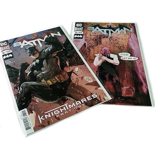 Each single issue is a different nightmare Batman is experiencing. Every story is tailored for the artist of that issue, some obviously working better than others. It's an interesting concept that gets better as the issues continue and you start to learn what's going on. The execution in the beginning was clunky as there didn't seem to be a point. Ultimately, I grew to enjoy it but it took getting past that issue with Professor Pyg. I hated the coloring in it. It looked like a 3D comic without the glasses. I know that was kind of the point of the nightmare but I still like to be able to comprehend the art on the page without going cross-eyed.