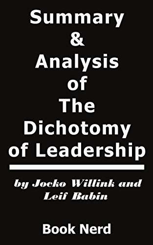 Summary and Analysis of The Dichotomy of Balancing the Challenges of Extreme Ownership to Lead and Win Book Nerd offered an in depth summary of “The Dichotomy of Leadership” and shows how the lessons presented by Willink and Leif apply to work, school, and life.Gain a thorough understanding of leadership and navy seals in these summary with real world examplesBackground Information on The Dichotomy of LeadershipMore info about Jocko Willink and Leif BabinTrivia questions and discussion questionsDownload and read now for an enhanced book overview that complements the original book. *Please This is an unofficial summary and analysis book of Willink’s and Babin’s “The Dichotomy of Leadership.” This companion is designed to further your understanding and analysis of the book. This is not the original book.