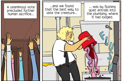 Ofc, this would not be a Doreen review of a Bad Machinery book if I didn't fawn over my girls, and especially the irrepressible Charlotte! Shauna is also a badass here, tho Mildred only makes brief cameos, as she's too busy terrorizing her father's co-workers to do much investigating. Weirdly, Little Claire has her lisp back! Honestly, I wouldn't even have noticed if I hadn't gone back to read my review TCotFR, where she no longer had it: I just so closely associate it with her that I forgot utterly that she'd lost it!