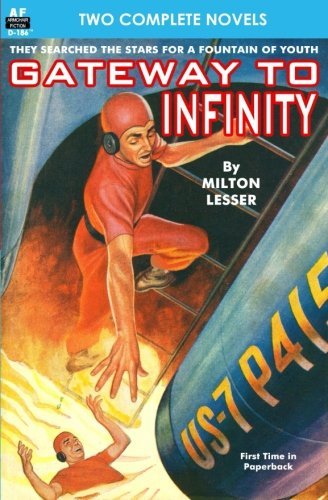 Armchair Fiction presents illustrated, extra large editions of classic science fiction double novels. The first novel is “Gateway to Infinity” written by the acclaimed sci-fi author, Milton Lesser. Young Earthman Jeremy Armitage had come to the planet Kadwon to bury his uncle. But soon Jeremy found himself knee-deep in debt and desperate for a job. Close to his wits end, Jeremy found himself listening to the wild tales of a total stranger. The stranger spoke of a beautiful young girl and her great grandmother, both of whom were in search of the grail of twenty-second century galactic civilization, a fabled fountain of youth rumored to be somewhere in the vast star clouds beyond Kadwon. “The World of the Fountain” as it was known, was the destination that Josephine Stedman and her great grandmother, “Captain Eunice” were aiming for; and best of all…they had a map with its location and a spaceship to take them there. However, the one thing they lacked was a pilot—and that’s were Jeremy Armitage came in. Unfortunately, there were others who knew of the map, and before long Jeremy found himself in a mad chase across the galaxy to find the “Fountain of Forever” and rescue the girl of his dreams. The second novel, “Around the Universe” is a grand science fiction adventure, written by Ray Cummings. Tubby Maguire’s incredible adventure began one night during a poker game while debating the infinite nature of Space with the rest of the players. Tubby yearned to know more about the vastness of outer space and the mysteries it contained. He was promptly visited by an odd Professor who seemed to know everything there was to know about the Universe. And when the Professor showed Tubby his space flier, the two of them were soon off on a grand tour of the Solar System. However, when they arrived on Venus, Tubby and the professor stumbled upon a diabolical plan concocted by the Martians and the Mecurians for the conquest of Earth. So what had started as an outer space pleasure tour for Tubby and the strange little professor ended with a mad race through space to avert the danger that hung over Earth.