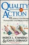 Quality Praise for Quality in Action "An important book—and one that’s just plain fun to read.… This book is a gem!" —from the Foreword by Tom Peters, author of In Search of Excellence and Thriving on Chaos "Townsend and Gebhardt’s essay on our foremost problem of staying competitive in a world market in which more and more little people are learning how to do it better and better is not only penetrating and revealing; it is also entertaining, which probably fractures both rules and records for this kind of literature." —Howard K. Smith "With power and style, Quality in Action redefines competitive advantage for our march into the next century. The trail is tricky and tortuous—make sure this guidebook is in your knapsack." —Allan Cox, author of Straight Talk for Monday Morning "Quality in Action is not only exhortation, it is a road map. Townsend and Gebhardt have taken much of the fear and mystery out of total quality management." —Ann McLaughlin, former Secretary of Labor and Founder of the Workforce Quality Commission "There is a lot of pompous posturing in the quality biz today. Quality in Action puts a greased skid under much of it. Townsend and Gebhardt’s book will quickly become known as the rational person’s guide to BS-less quality improvement. It’s a must read." —Ron Zemke President, Performance Research Associates Coauthor, Service America and Delivering Knock Your Socks Off Service "Quality must become a national issue. Quality in Action enables you not only to see the truth of that statement, but also to feel it. Long after you have forgotten the points (or the titles) of other business books, you will remember and use the lessons contained in this one." —Congressman Don Ritter (Pa.) Subcommittee on Technology and Competitiveness "Quality Champion on Capitol Hill" "Quality in Action is a superb tool for teaching and learning the nuts and bolts of quality management. Townsend and Gebhardt have successfully translated W. Edwards Deming’s ‘profound knowledge’ from theory into practice in a style that is both entertaining and enlightening. Pick up the book and start reading—anywhere,on any page. I dare you to put it down before you’ve read it all at least once; then expect to read and ponder the 93 lessons again and again." —Vice Admiral James A. Zimble, M.D. former Surgeon General, U.S. Navy President, Department of Defense Medical School