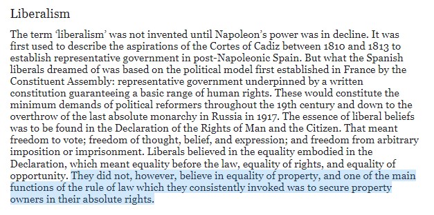 Margaret Thatcher declared that the rights of man were a British invention, and gave Mitterrand a lavishly bound copy of A Tale of Two Cities. A British historian working in America produced a vast chronicle of the Revolution which argued that its very essence was violence and slaughter (Citizens, by Simon Schama). It was a bestseller in a market where Burke, Carlyle, Dickens, and Orczy had clearly not laboured in vain.Also, liberalism: I never get tired repeating to Yanks that, for the rest of the world, it's not what they think. Here's our author on the term:
