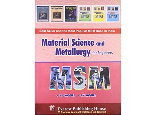 India's Highest Selling and Most Popular recommended MSM Textbook across many State Universities in India. This book is useful for Engineering Students as well as Industries. Contents: 1. Structure of Materials 2. Plastic Deformation 3. Mechanical Testing and Evaluation of Properties 4. Non-destructive Testing 5. Equilibrium Diagrams 6. Corrosion and Prevention 7. Temperature Measurement (Pyrometry) 8. Metallography (Optical and Electron) 9. Steels and Heat Treatments 10. Engineering Alloy Steel 11. Cast Irons 12. Engineering Non-Ferrous Alloys 13. Strengthening Mechanisms 14. Powder Metallurgy 15. Polymers 16. Joining Processes 17. Methods of Surface Improvement Appendices References Index
