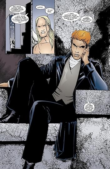 The light relief volume of Lucifer. It starts off with Brothers in Arms, which is decent; the two titans become omnipotent in a way which doesn't seem to make much sense in the light of God's power not seeming to be tied to belief in the Vertigo universe, yet they are pretty funny although they never convince of a threat. Then, in issues #46–49, Mazikeen, Elaine and the others clear house in Lucifer's world. This includes the sweet and funny Thole, king of stictchglass who is one of my favourite characters, despite his brief appearance.