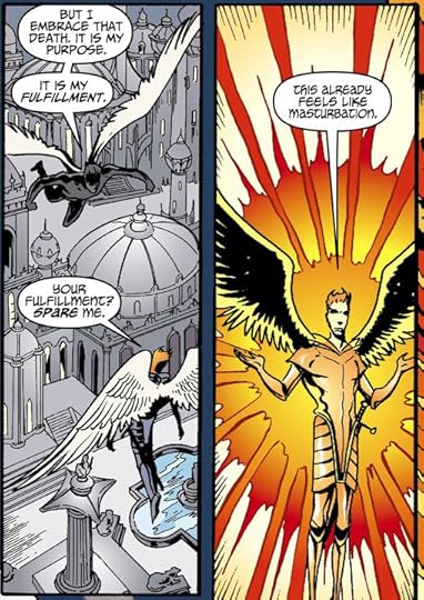 Kind of running out of steam reviewing these so I think I will mostly let the pictures speak for themselves this time. I absolutely love the first half of this volume with Lucifer and Michael defending heaven and just all of their conversations in general. I really love how they both play off of and antagonize each other in this series. The second half is decent enough but has never really been my favorite part of the series and even the stuff with the main characters feels mostly like filler so that's why this gets 4 stars instead of 5. Kind of want to round it up because I think this is the only volume I've given 4 stars to at this point but it's definitely a bit of a lull before the endgame stuff really gets going. Even this series is not immune to middle book syndrome ;)