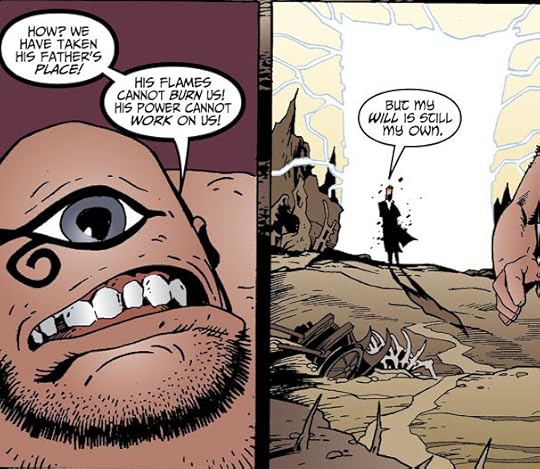 Two titans storm the Silver City hoping to fill the void left by God when He left for parts unknown. It's up to Lucifer to stop them from taking the throne, but to do that he'll need his reluctant brother Michael's help. All immortals are ordered to leave Lucifer's new cosmos to make sure they don't try the same thing the titans did, which affords the reader an opportunity to see Elaine, Mona, Mazikeen, and the fallen cherubs in action on their own (these side characters are quickly becoming favorites of mine). In the midst of all this, Mike Carey tells the touching tale of the creature Thole and his human friend from the other side of Lucifer's gate, once again showing that even monsters have hearts. I mentioned before how much I like it when minor characters from previous arcs reappear in greater roles, but another thing I'm really liking in this series is how each arc leads seamlessly into the next.