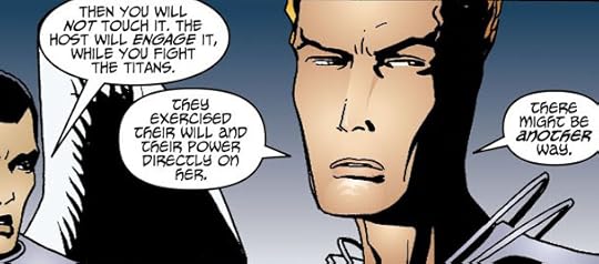 The last page introduces a new character who's presence has been lurking in the background since the story began, and a major adversary for the future. Lucifer predicted the Titans were just the warm-up, with far more dangerous and deadly opponents still to come. He was right. They show up in the next volume.