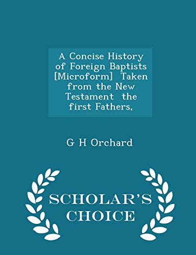 A Concise History of Foreign Baptists [Microform] Taken from the New Testament the first Fathers, - Scholar's Choice Edition