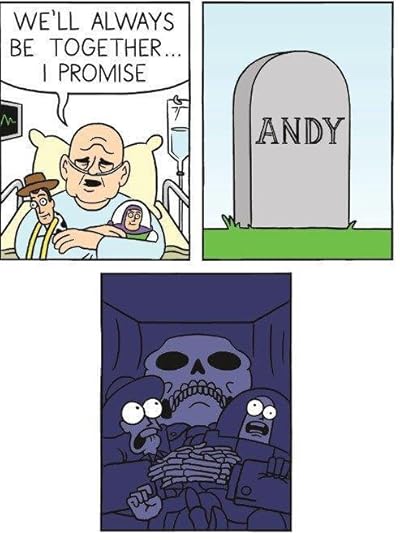 This was an interesting little collection! I know that a lot, if not all, of the little comics featured in this book originally started as web comics. I can totally imagine these popping up on my Twitter or Instagram feeds, and a few of them made me really laugh. Some of them, however, fell a little flat, and because there is no continuous storyline and they're all so short, it felt kind of like an abrupt joke book. The theme of "ruining your childhood" wasn't super consistent throughout it, and while it was a quick enough read and brought enough smiles that I wasn't mad I had picked it up, I also don't think I would at all consider this a must-read. However, if you're interested, maybe check out the author's socials or, if you're already a fan, pick up this bind-up of his work.