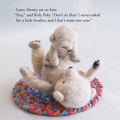 Roly Poly did not ask for, nor does he want, a little brother. So when he gets one, he reminds his baby brother all the time that he's an independent bear. Until an unfortunate accident brings them closer together. These illustrations are darling, and so is this familiar story about new siblings. Little felted bears go through the motions, with sometimes panel-like illustrations showing the progression of one scene. Very cool photographic style.