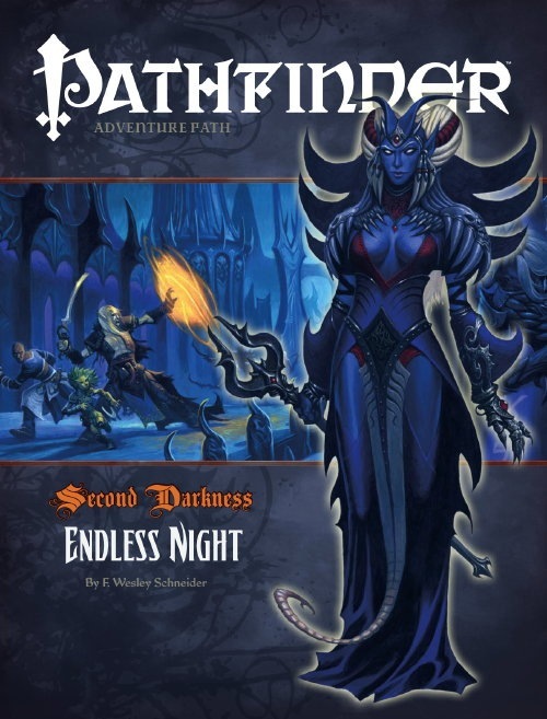 - “Endless Night,” an adventure for 9th-level characters, by F. Wesley Schneider - An exploration of Zirnakaynin, the sunless city of the drow, with revelations on its cruel residents and ruthless rulers, by F. Wesley Schneider - Secrets of the perverse drow art of fleshwarping and the terrifying abominations born of this mad science, by J.D. Wiker and Darrin Drader - Eando Kline reawakens an evil that could jeopardize all of Golarion in the Pathfinder’s Journal, by Jay Thompson - Five new monsters by Jonathan Drain and F. Wesley Schneider